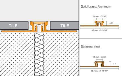 Schluter-DILEX-KSN is available with solid brass, aluminum, and stainless steel anchoring legs. All profiles feature a thermoplastic rubber movement zone.